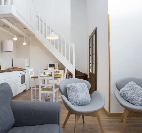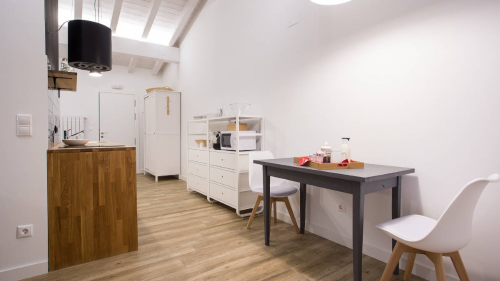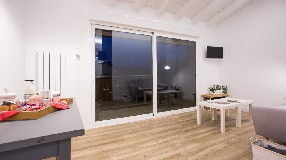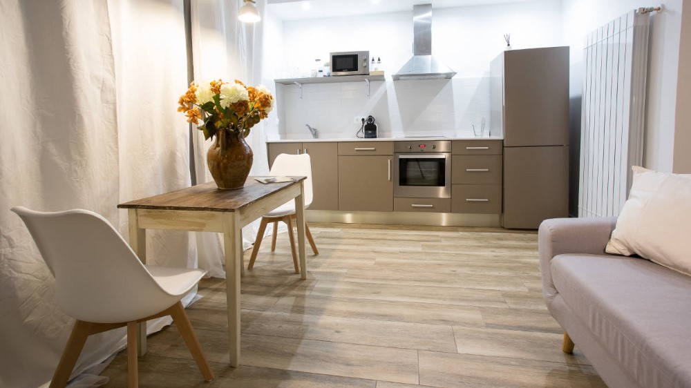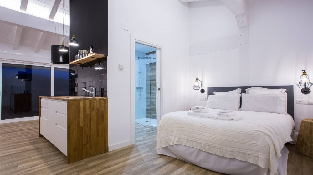 Hortentsia: Apartamento para 2 personas (28m2) en planta baja. Incluye minikitchen totalmente equipado, salita con TV LED, baño y cama con lencería de algodón egipcio. Cuenta con calefacción central de biomasa, WIFI y un gran ventanal. No se permite cama supletoria.